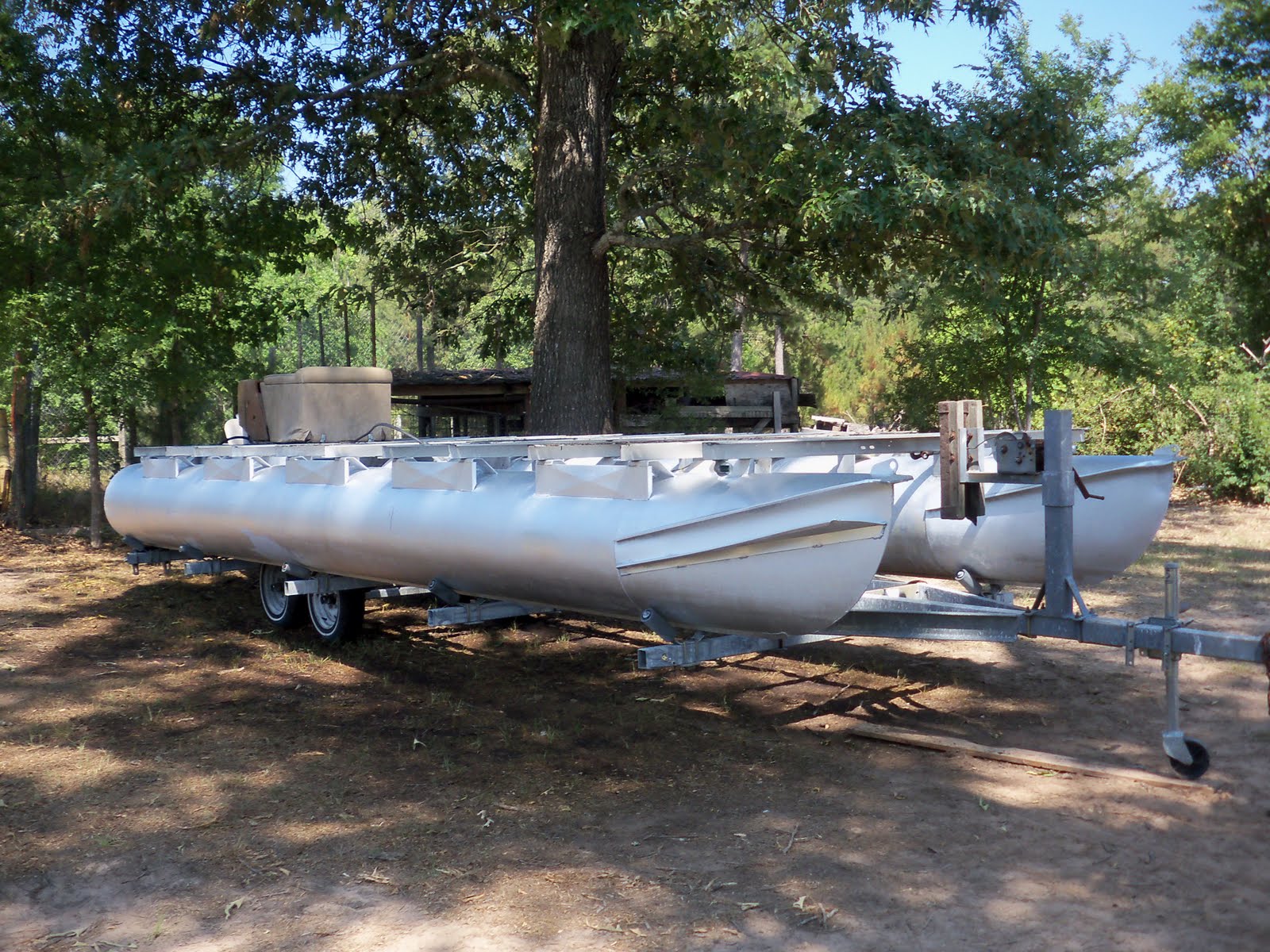 We were up and at it very early this morning. Nora fixed us a scrumptious cream cheese sopapilla breakfast dish and we were out to the boat. With Semper Fi down to her "bones" she was given a good pressure washing. Lots of dirt dobber nests, cobwebs, spiders, and all kinds of creepy crawlies. After a good bath, we pulled out our "wonder cleaner", JJV's Best. Now, I'm sure everyone has purchased something before that promises it will do all kinds of things so we really didn't have confidence that this cleaner would do all that it said. "Spray on and wash off and your aluminum pontoons will look like new!" But, if it would even do half, then we would be satisfied. Instructions were to spray and leave on 10 minutes. Well, we did just that and......the pontoons looked dang good! We sprayed and left on 20 minutes, and the pontoons shined like the sun!! We were all amazed and very happy! It did take time to do the whole boat but she was glowing when we were done!! Our next project is the gas tank. The original gas tank held 12 gallons and sat under one of the back seats. Our plan is to remove that tank and install a 25 gallon gas tank that sits under the deck between the pontoons. Measurements were taken and a supply list was made. Lance will work on this during the week. Semper Fi was gleaming when we left. Wait! I think I just saw her smile :)