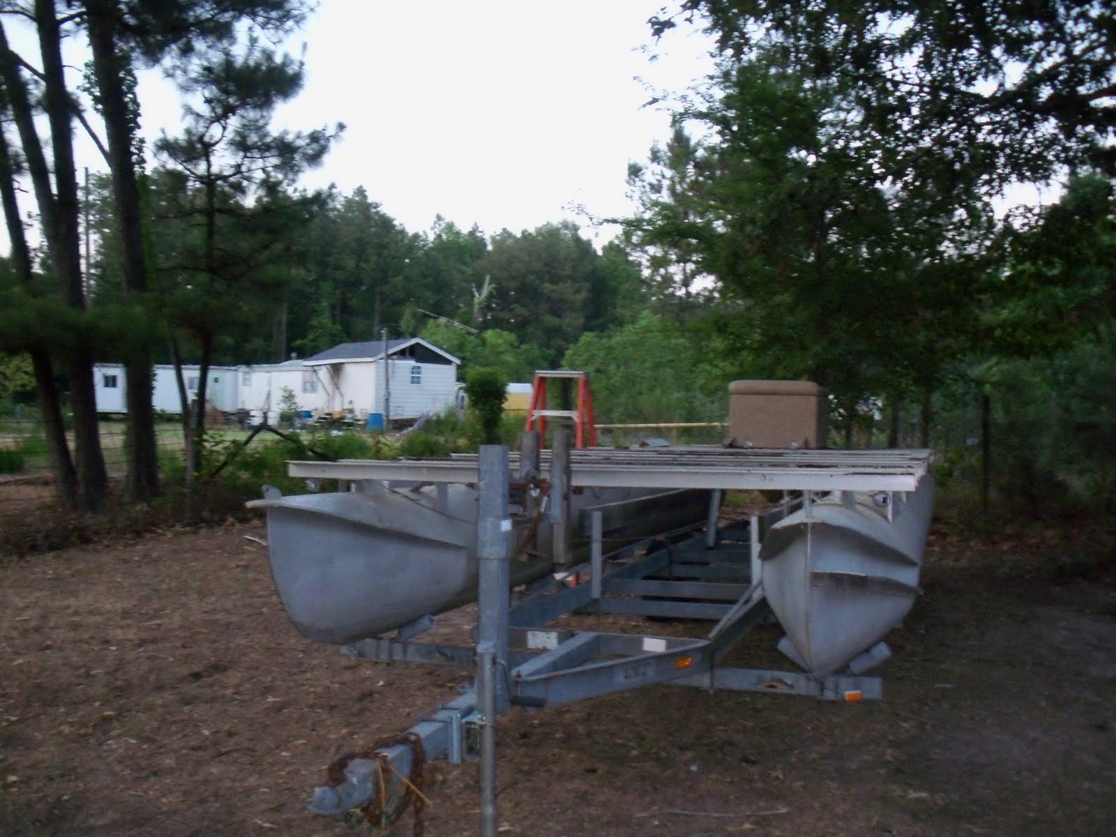 Hey, have I mentioned that it's HOT! Whew! Well, still working through our controlled demolition. We are working on taking everything off the top side so we can pressure wash and clean the pontoons. K.C. found some cleaner that we are hoping does the trick. The pontoons are polished aluminum but because they are only 26 going on 27 years old, they are oxidized and just lake water scummy. Today we removed the two back seats with the gas tank and batteries that were stored in them, the rest of the deck and EEEKKKK! the console. Lots of wires and steering cables and shifter cables and stuff I don't even know what it is. To give the men (my brother K.C. and my husband Lance) credit, they did label everything prior to cutting wires. The real trick will be putting the new console in :) By the end of the day she was just engine, pontoons and crossbeams. She looked....naked! Tomorrow we try out the cleaner that K.C. found online. JJV's Best. Oh, we did buy one boatwarming present for ourselves. A battery operated Margaritaville shaved ice blender for the boat. We quit early, about 5pm, so we could shower and try out the BOB (battery operated blender). It makes the YUMMIEST Margarita's EVERRRRRR!!